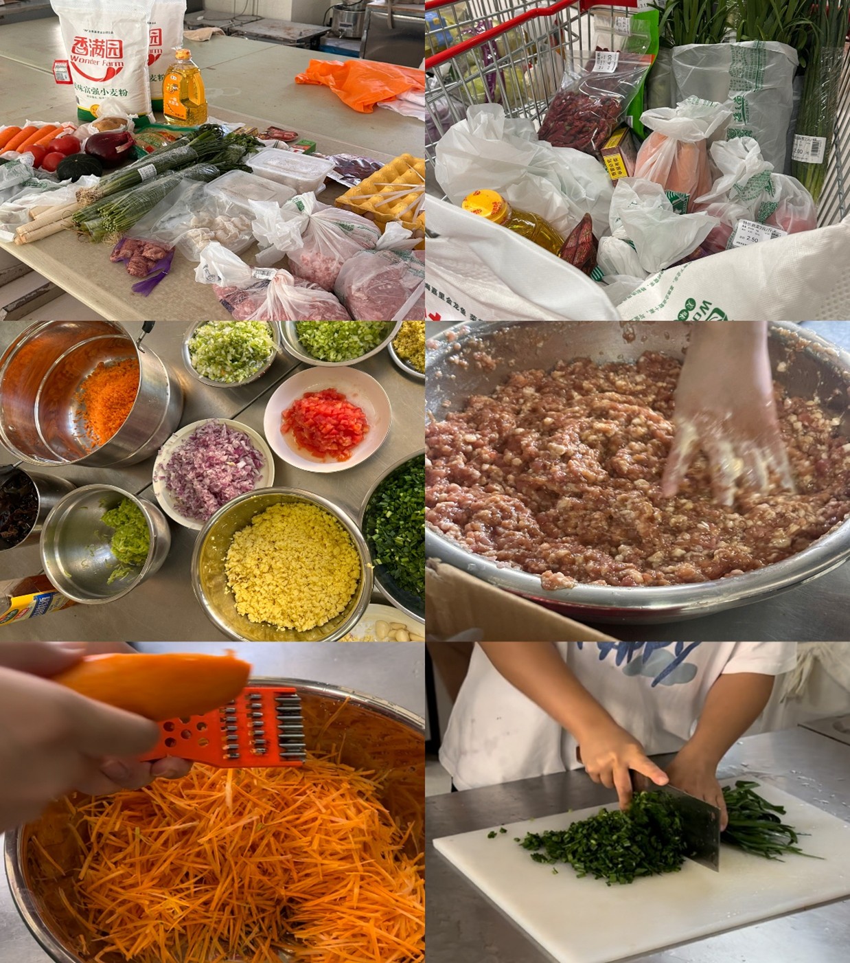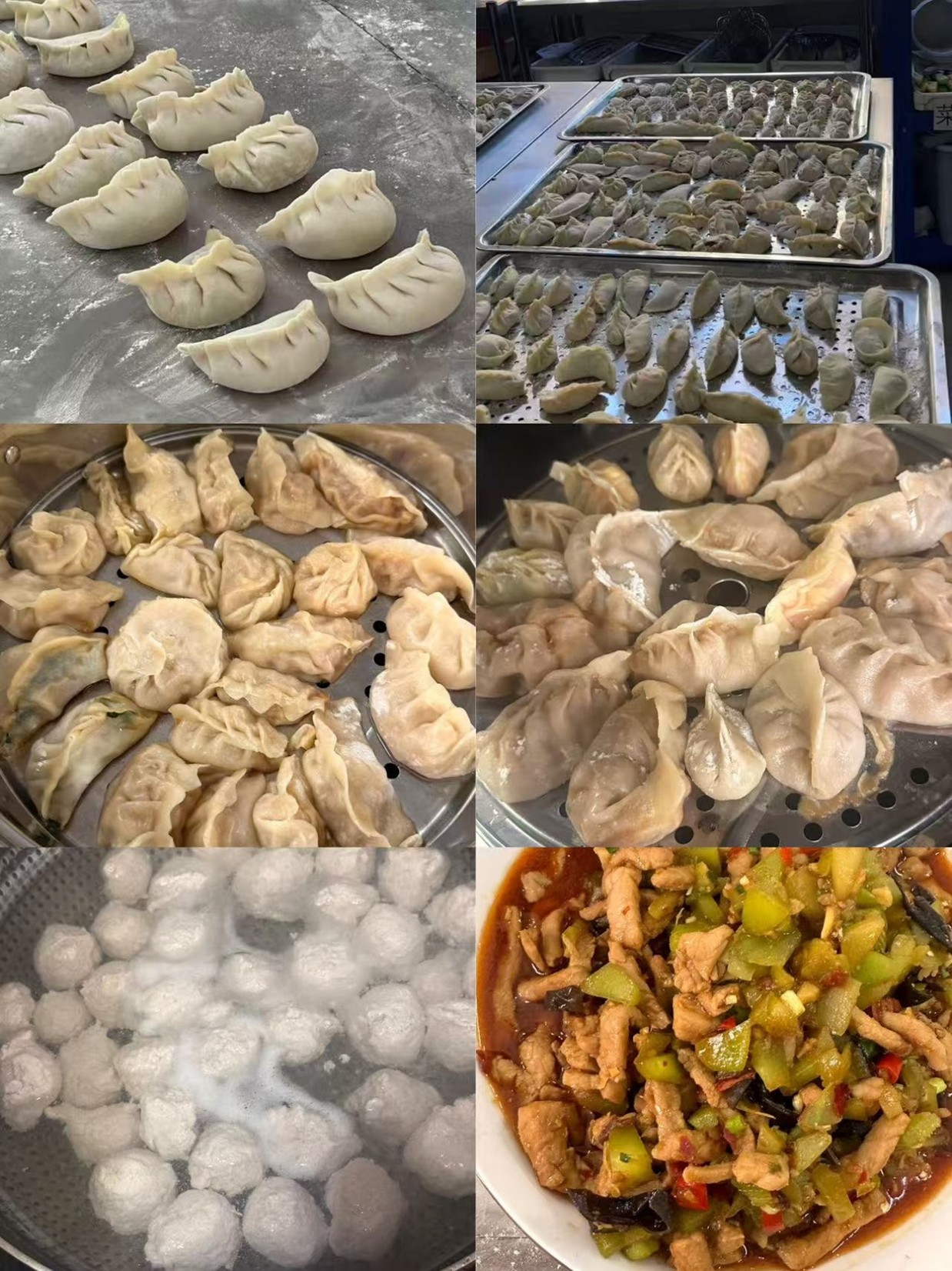 在老师的指导下,同学们八人一队分工协作,擀皮的同学手法娴熟,擀面杖旋转间一张张厚薄均匀的面皮接连成型;包馅的同学创意十足,指尖翻飞间,圆润的水饺、褶皱精致的蒸饺等摆满托盘。除了饺子制作,活动还设置了手工肉丸体验环节,同学们按照老师传授的专业技巧,将肉馅反复摔打至起胶,再搓成大小均匀的肉丸,沸水中煮熟的肉丸Q弹鲜香,成为现场又一美味亮点。