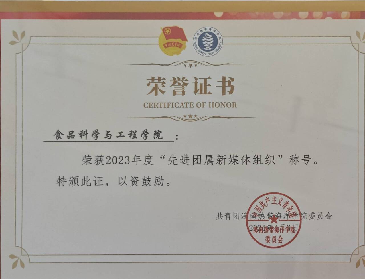 红足—世足球网团委新媒体中心荣获校“先进团属新媒体组织”称号
