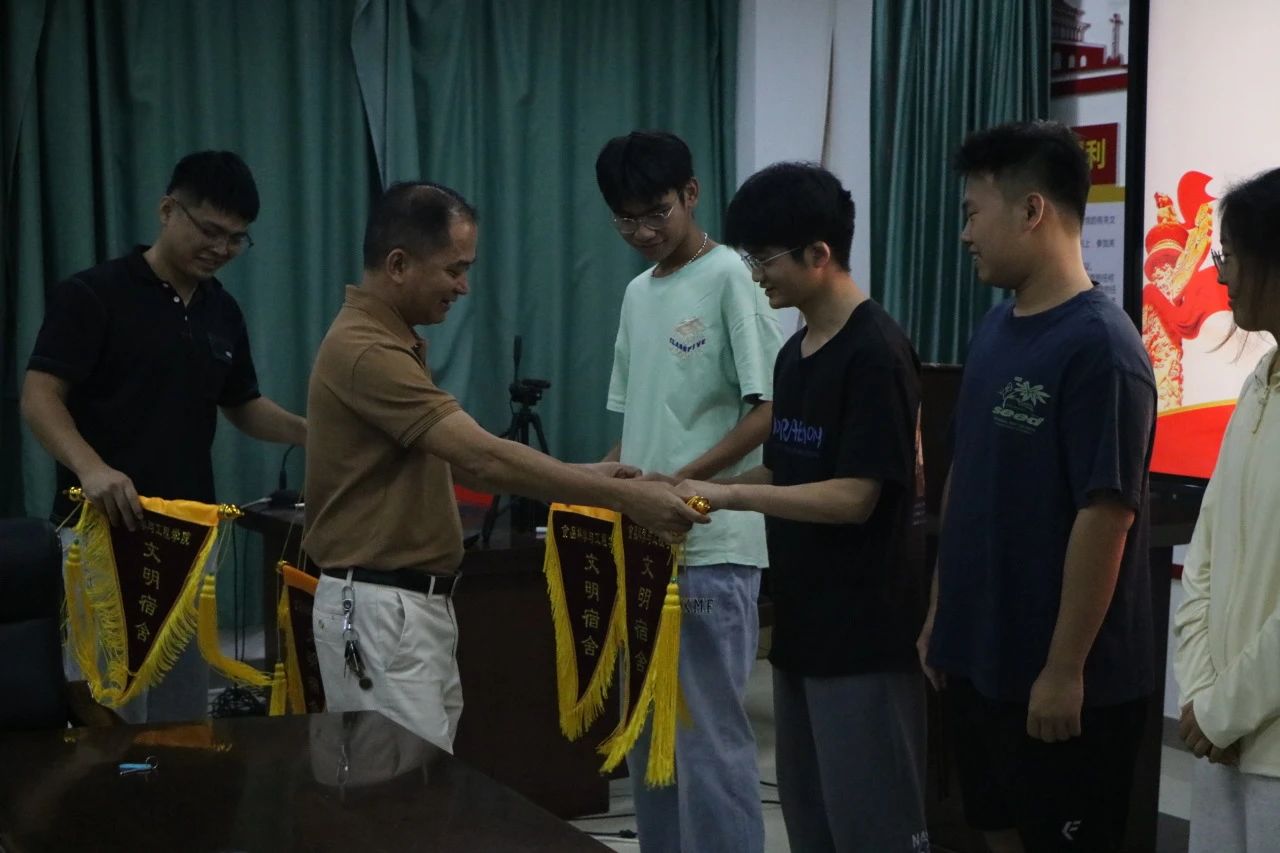 同时为了让文明修身工程更好的推进下去,红足—世足球官网于11月15日在9303举办表彰仪式。学院党总支书记王开强亲临现场对获得文明宿舍的同学颁发锦旗以做表彰。王开强表示奖项只是起点,希望获奖宿舍的同学继续保持优秀,同时希望本次评比活动能够激励其他同学继续努力!