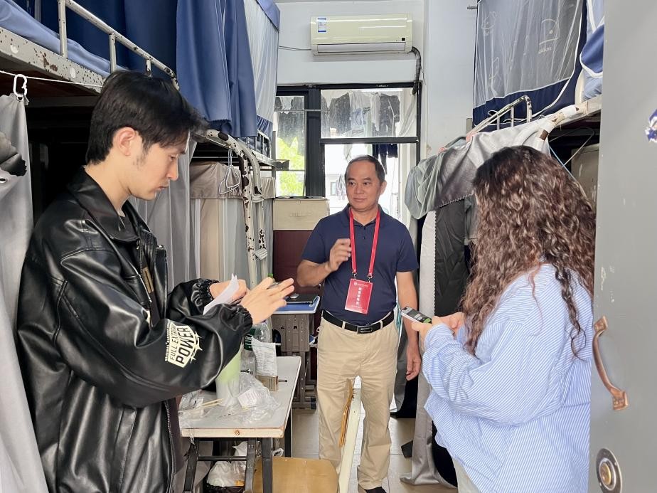 王开强书记与同学们亲切交流,询问大家学习生活状况,并和同学们一同整理宿舍杂物,强调宿舍是学生在校成长的重要空间,安全与卫生是保障学习生活的基础,要求学生提高安全防范意识,自觉遵守宿舍管理规定。辅导员、班主任同步普及消防安全、用电安全知识,强化学生安全自律意识。