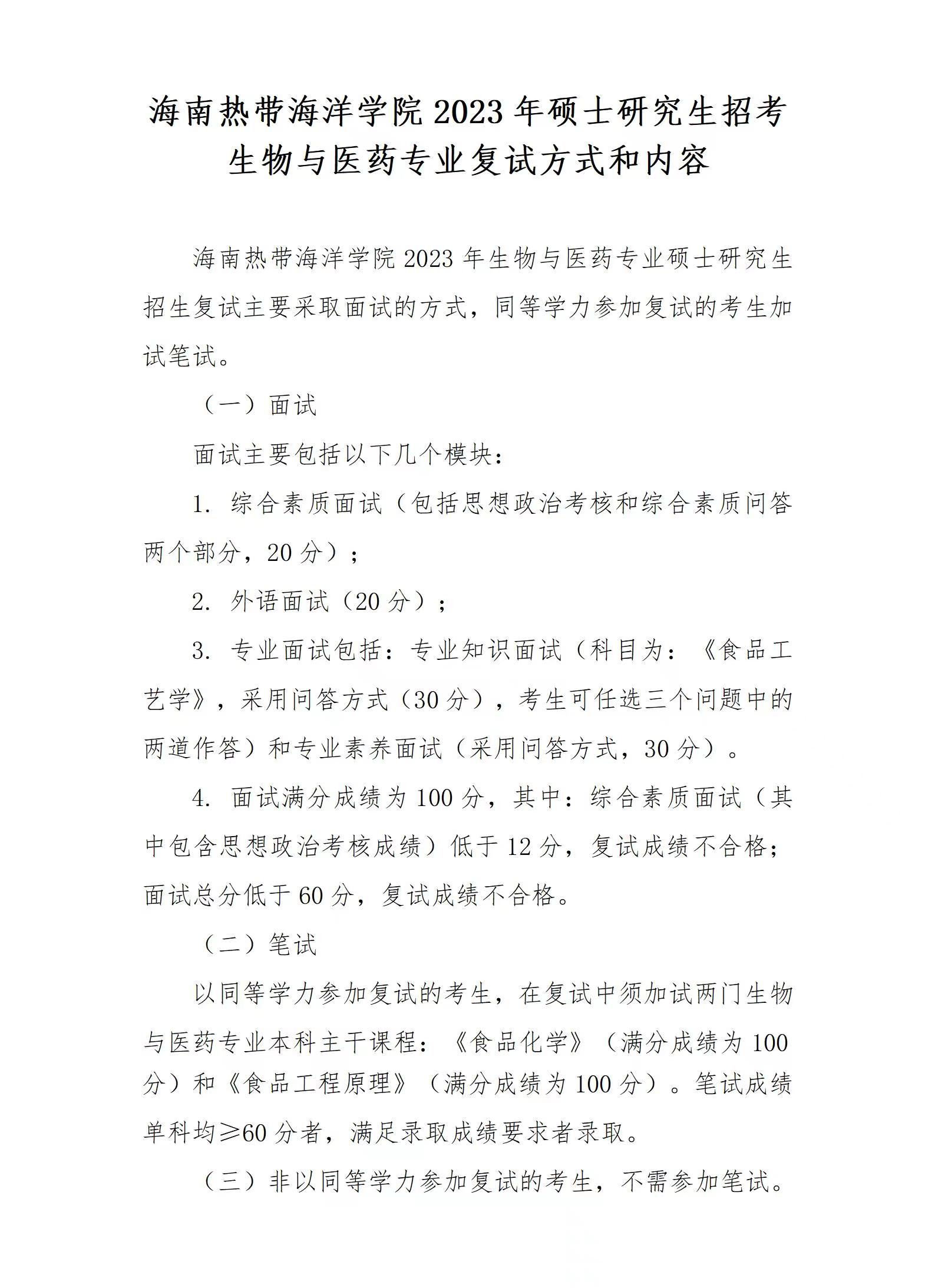 生物与医药专业复试方式和内容